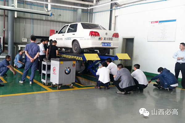 2015年5月8日下午與我公司合作單位山西省英大財險全體車損定損員來我廠參觀、四輪定位學習,由我廠車間維修人員配合定位、演示。最后車間副總針對奧迪A7電動方向機做了簡單介紹。