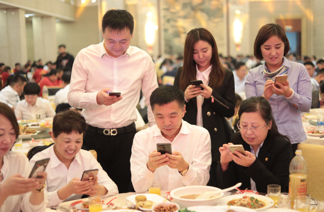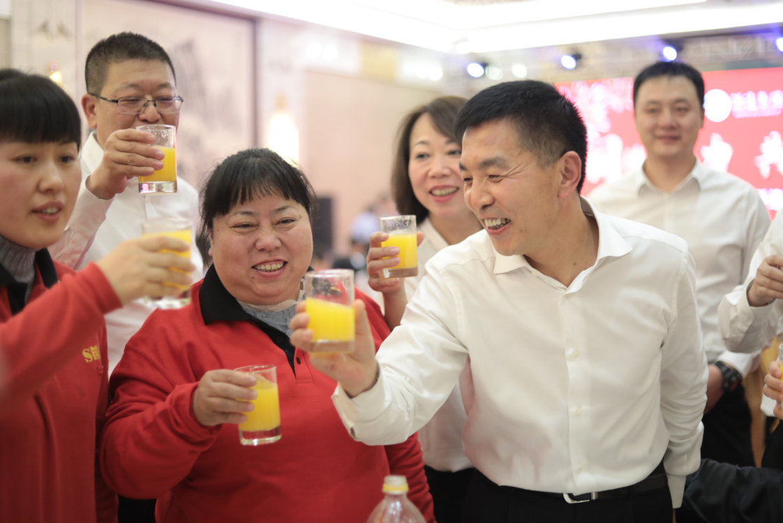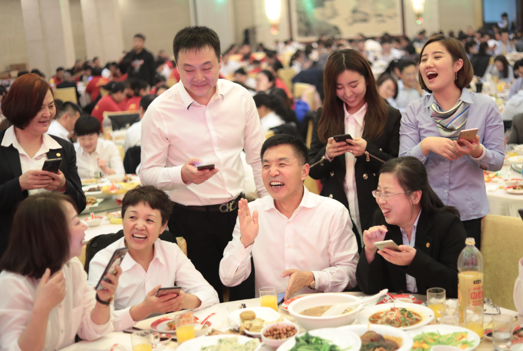 晚宴期間,馮董事長帶領集團高管來到員工中間,跟大家一起碰杯祝福、表達感謝之情,大家臉上都洋溢著幸福、快樂的笑容。晚宴23點整,馮董事長在軟件平臺現場發放紅包雨,大家都放下手中的碗筷,掄起袖子,在歡聲笑語中搶紅包,紅包雨一直持續到23:15才結束,搶紅包環節將晚宴推向了最高潮。