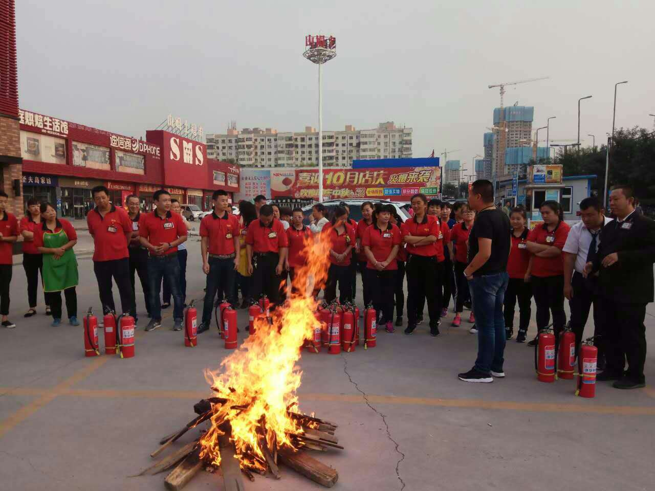 為進一步強化員工消防安全教育,增強全民消防意識,提高抗擊突發事件的應變能力,正確掌握使用滅火器的方法。2017年9月21、22日,山姆士建南店組織了以“消防你我他 安全靠大家”為主題的秋季消防演練。