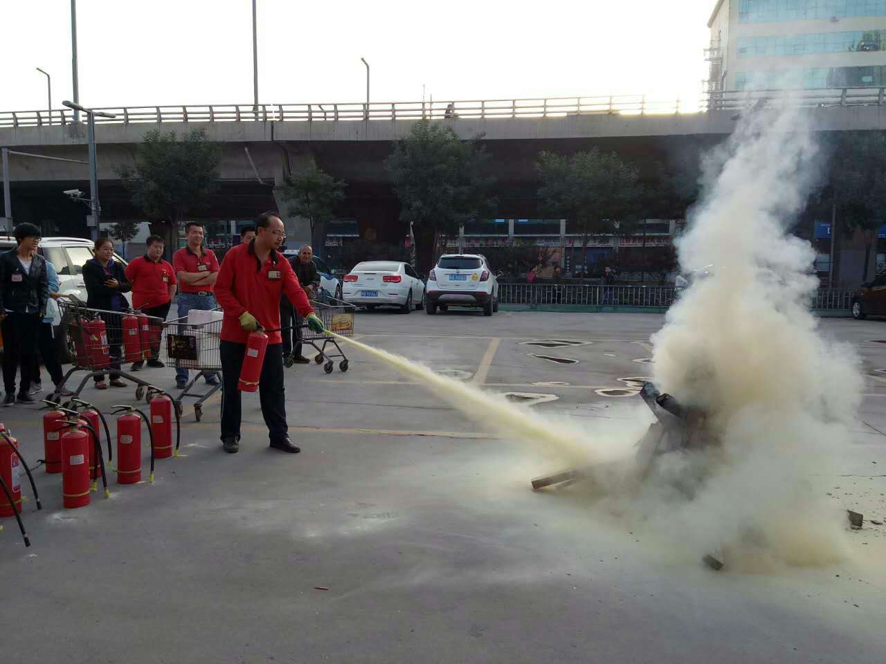 本次消防演練得到店長及各部組主管的大力支持,由門店防損經理講解滅火器的正確使用方法、步驟和滅火姿勢等,隨后安排員工現場實操滅火。為及時掌握和體驗真火的滅火方法,員工們都爭先到現場拿起滅火器按使用方法和滅火步驟進行實操滅火,參加演練的員工嚴謹認真,服從指揮,現場氣氛十分熱烈。
